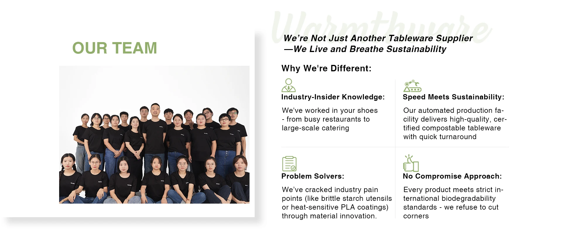 Productos principales:Vajilla de bagazo, vajilla de PLA, vajilla biodegradable