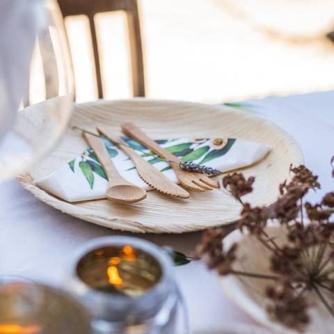 공장 공급 친환경 일회용 대나무 포크와 스푼 세트 퇴비식 취사 및 테이크 아웃용 칼